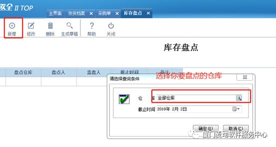 我們點(diǎn)開庫存盤點(diǎn),顯示查詢條件,這個(gè)是查詢我們之前制作的庫存盤點(diǎn)單