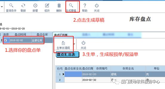 3.???? 選擇你剛做完的盤點(diǎn)單,點(diǎn)擊生成草稿,核對(duì)商品是否爭(zhēng)取,點(diǎn)擊生單。
